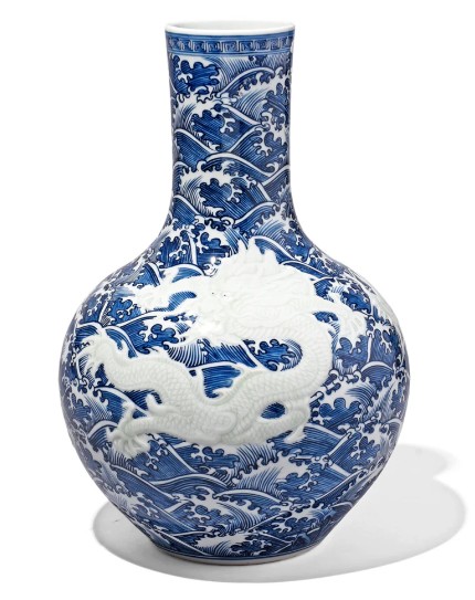Blue-White Wave Dragon Vase